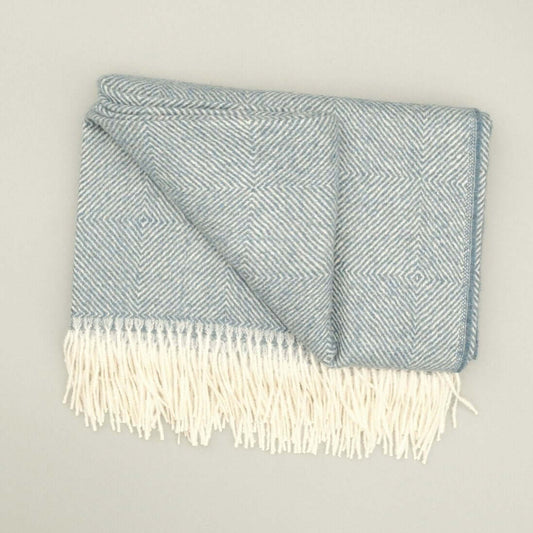 Alpaka Wohndecke aus 100% Baby-Alpakawolle mit Diamantmuster (Grau, Blau)