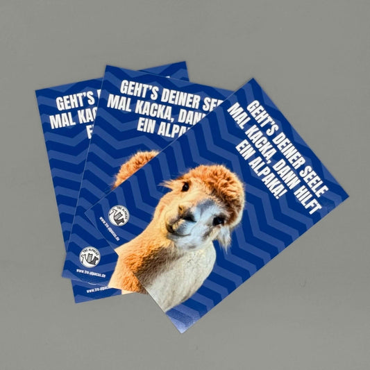 Niedliche Postkarte „Geht’s deiner Seele mal kacka, hilft ein Alpaka“ mit Alpaka Alfred (20% fließen in Herzensprojekte)