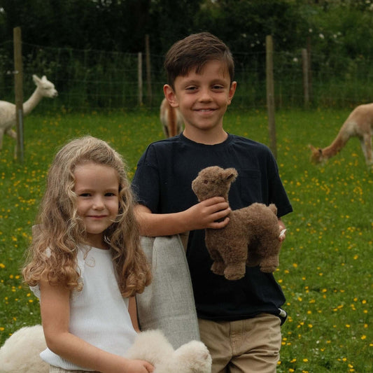 Ein Alpaka Kuscheltier aus feinster Alpakawolle ist das perfekte Flausch-Geschenk für jeden Alpaka-Fan. Unsere handverlesenen weichen, hypoallergenen Alpaka Plüschtiere aus 100% Alpakafell bieten ein kuscheliges Erlebnis und sind die idealen, weichen Begleiter für Zuhause. Ein Stück Alpaka-Glück zum Verlieben – für Jung und Alt!