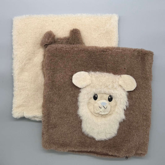 Alpaka-Motiv Kissenhülle 40x40 cm aus Alpakawolle (Braun, Weiß) (Restposten)