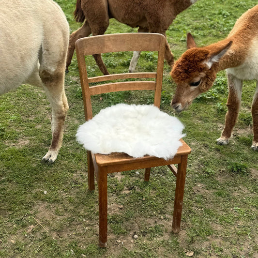 Handgemachte Alpaka Sitzkissen aus Alpakawolle in Weiß (rund, ca. 40 cm)
