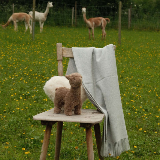 Alpaka Sofa Decke aus 100% Baby-Alpakawolle in Naturfarben (135x180cm)