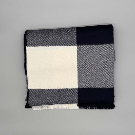 Flauschige Decke 130x180 cm aus 100% Babyalpakawolle im Karomuster (Blau, Grau)
