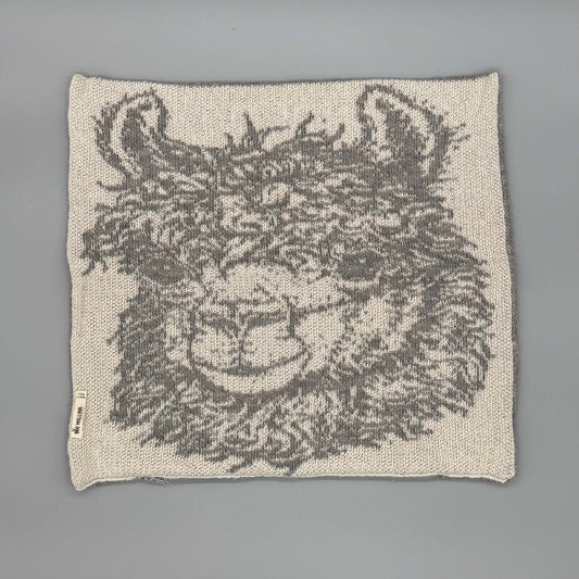 Handgestrickter Kissenbezug mit Alpaka-Motiv 40x40 – Baby-Alpakawolle pur