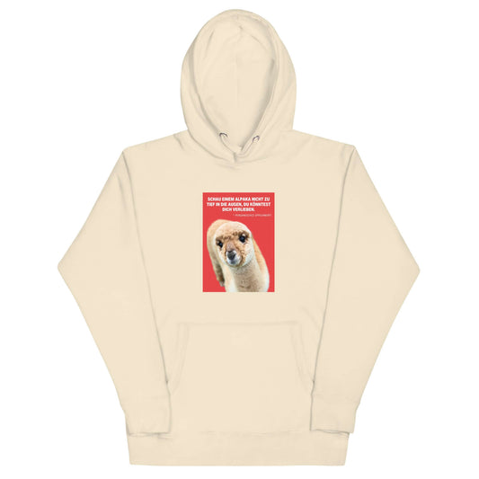 Alpaka-Liebhaber Hoodie „Schau einem Alpaka nie zu tief in die Augen“ (verschiedene Farben)