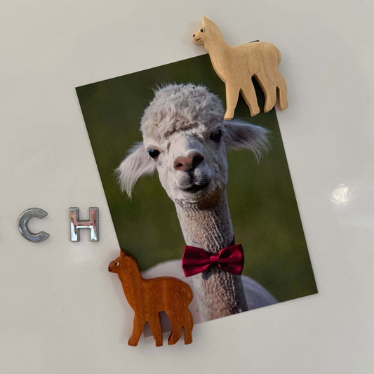 Alpaka Magnet Holz – handgemachter Kühlschrankmagnet aus Naturholz (Braun, Weiß)