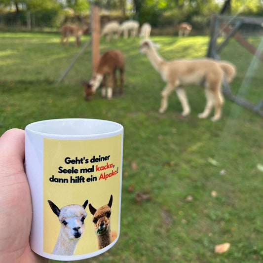 Keramiktasse mit Alpaka Motiv "Geht's deiner Seele mal kacka, dann hilft ein Alpaka"