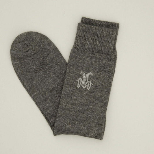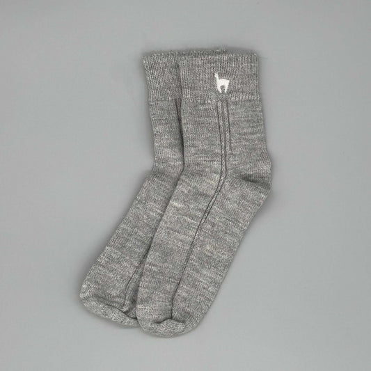 Warme Socken aus Alpakawolle mit Alpaka-Stickerei (Grau, Weiß, Schwarz)