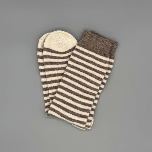 Moderne Wohlfühlsocken aus 92% Alpakawolle im Ringelmuster für Damen & Herren (Braun, Grau)