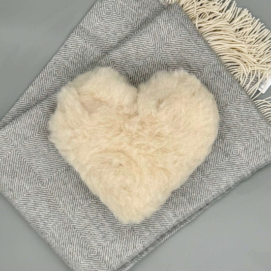 Herzförmiges Kissen aus 100% Alpaka Wolle – Kuscheliges Herz-Dekokissen (Weiß)