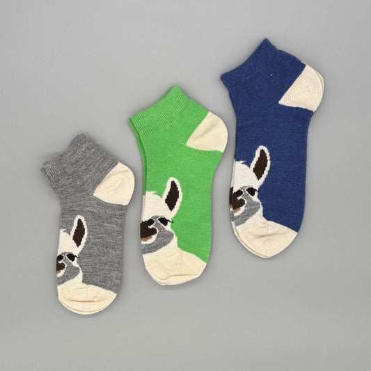 Niedliche Alpaka Sneaker-Socken aus Alpakawolle & mit Alpaka Motiv (Blau, Grau, Grün)